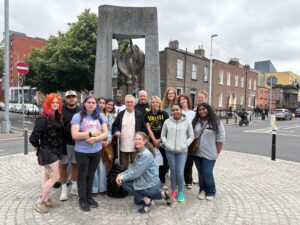 I absolutely love the structure and freedom of this course. I am currently 20 and have planned my own international trip before, and I much miss having my trip planned for me. The faculty did a great job formatting the schedule, giving us ample free time and breaks. The tours and activities we have done so far have not only been extremely informative but also genuinely fun. I have never been a person to be fully engaged with museums; I am happy that our trip is not just going to museums, but talking to people who lived during times of oppression and revolution. I think that has been the most impactful so far. Hearing real-life stories of someone who has firsthand experienced such tragic events really puts into perspective how far we have all come and how much harder we have to work to sustain that. Our first walking tour was visiting different buildings that had deep significance to the Irish LGBTQ community when it was illegal to be queer. On this tour, we saw a statue of Oscar Wilde, the Irish author, who was in prison for two years for staying in a room with a man and making ‘suggestive’ noises. There was a vast history that we were able to learn from buildings that have ordinary uses now, which were once places used for liberation and social gathering. On our second walking tour, our tour guide was from the time of gilded prisons for children and shared his personal account of his 7-year-old brother being sent to, essentially, a labor camp, for 7 years. He was only caught stealing rosary beads. For many years, our tour guides’ family tried breaking him out until he escaped from a third holding center to dress up as a girl to try to hide from the police in Dublin. I am thoroughly surprised by the grim Irish history, specifically pertaining to anyone who was not a white Irish straight cis male. I was unaware of the very complex history of oppression in Ireland. I know this is due to my own ignorance, but I honestly had no idea that Ireland was such a heavily ruled government with such an impact from the church. Above everything, I can say this experience abroad has been extremely educational, even in the three days we have been here.