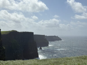 The day after our free day, we took a day trip to Galway. Sadly, we went on a bank holiday, so most things were closed but Galway had an amazing bright set up to the town. There was a small market going on where people sold handmade goods. Soon after our arrival in Galway we took a bus to the Cliffs of Moher. This is where a scene from one of my favorite movies, The Princess Bride, was shot. It was breathtaking seeing such green, moving grass and blue, breathing oceans clash into each other. The cliffs were breath taking with scattered farm animals on the restricted grass areas. The visual beauties of Ireland were incomprehensible.