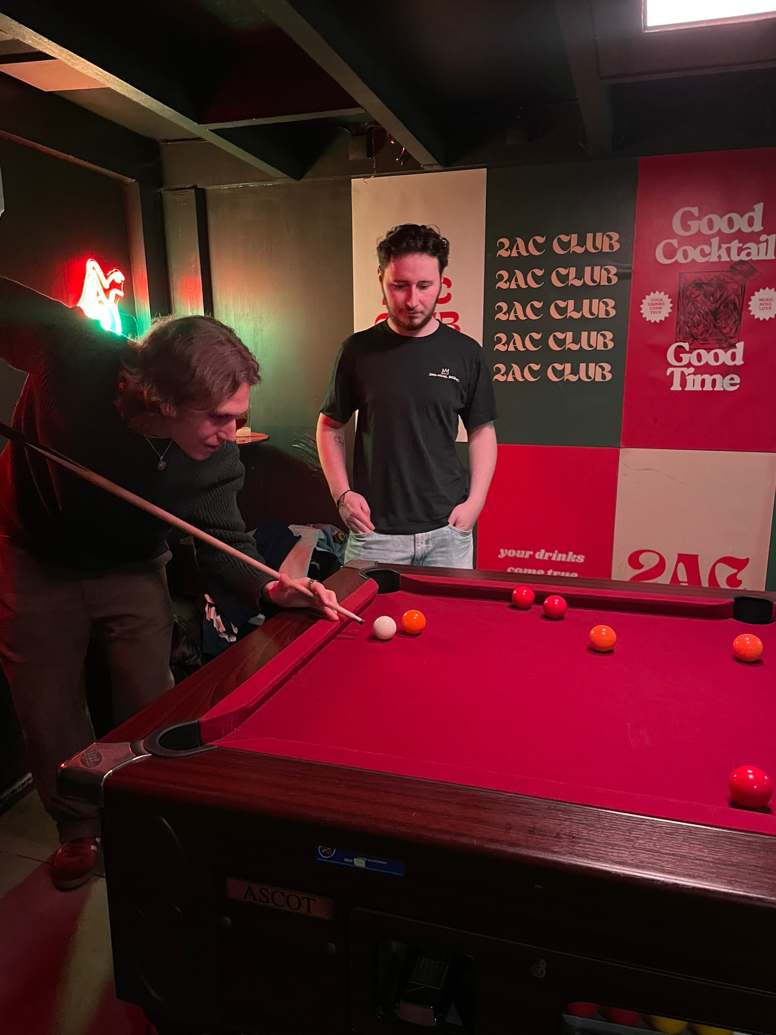 rooms have a kitchenette, so I’ve actually been cooking most of my meals until our meal stipends come in! After dropping our bags off in our rooms, we hopped back on the metro to see the city center at night, where we coincidentally bumped into some other international students, Allie, Will, Kai, and Contessa! The six of us then grabbed some dinner and wandered around the city. While the city center is always beautiful, it really shines at night: small lights hanging between buildings, cobblestone roads coated with a light blanket of snow, and glistening European architecture. I am so grateful to be able to experience the lively, yet calm city that Lille is. The next day, a couple of us visited an open-air market in the neighborhood of Wazemmes, where vendors sell all sorts of items at lower prices. However, it was a little overwhelming for me, so I only bought a bouquet of flowers for my cousin, who I was visiting later in the day. We also did a bit more exploring of the city afterwards. Monday night, my friends and I went out to celebrate Kai’s birthday! We ate dinner at a fun restaurant that had a bunch of board games to play and later went to another place to play darts (which I learned is not as easy as it looks in online games!).