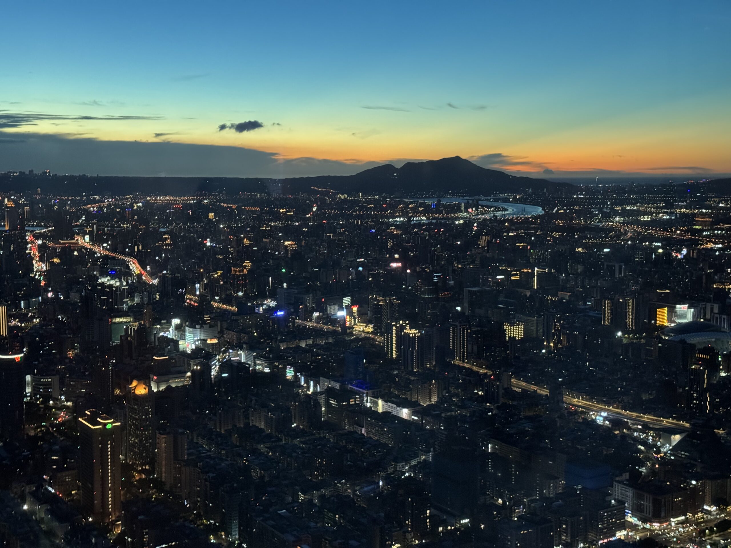 The day after orientation was a free day, so I decided to visit Taipei 101, which is the tallest building in Taiwan. I took the high-speed elevator up to the observation deck, where I got an incredible view of the entire city. I went later in the evening so I could see the sunset. The city at night was incredibly bright. I could even see mountains far in the distance.