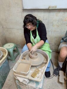 The last event I attended was a pottery workshop in the small town of Yingge, known for its ceramics and art. It wasn’t too far from the city. There were many shops selling ceramics. I wanted to visit each one! We were taken to an older building where there were tables set for us and pottery wheels. The owner taught us how to do pinch pottery, and we all had the chance to make something on the wheel as well. I made a small cup, and in a month, the owner will send it to us so we can take it home! I’m really looking forward to seeing how it turns out. After the event, I visited the Yingge Ceramics Museum, where I got to learn more about the history of ceramics and the different creation methods.