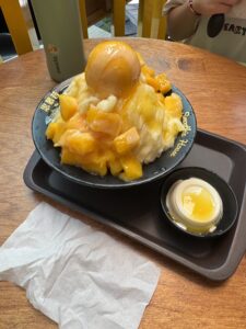 Outside of CET events, I’ve also been squeezing in other fun experiences when I have the time. I got my bangs trimmed and visited my first night market in Shilin, which is one of the most famous ones. It was lively and packed with energy—so many sights, smells, and tastes. I tried this cranberry lemonade, which is one of the best things I have ever had. Another dish I tried for the first time was mango shaved ice. It was one of the best things I have ever had. Authentic Taiwanese mango shaved ice is a must-have if you ever visit.