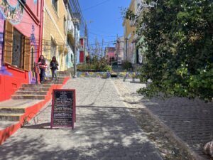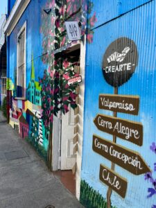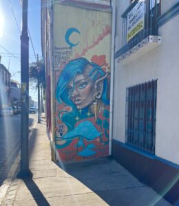 As we all know by now, I spend just about every spare moment exploring the city. About a week ago, I decided to check out Cerro Alegre.It’s one of those places that feels like it was designed to be wandered, with narrow streets winding up and down, every corner bursting with murals that tell a story so much deeper than the brushstrokes they are built upon. Honestly, it was probably the most touristy thing I’ve done so far. I couldn’t help myself. I stopped every couple of steps, mouth hanging open, snapping picture after picture like I’d never seen a mural before. In front of the murals were little cafés tucked around each corner, with metal tables laid out in front of them.